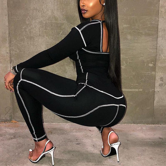 Two Piece Pants Sets Sexy Hollow Out Women Autumn Clothing Stand Coll