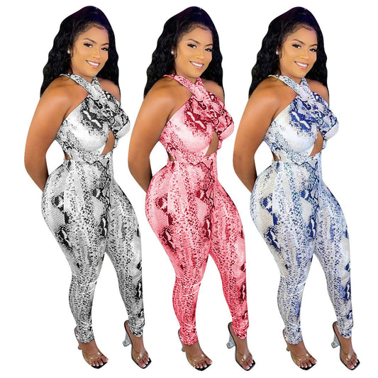 Women Clothing Sexy Snakeskin Pattern Road Halter Jumpsuit Women